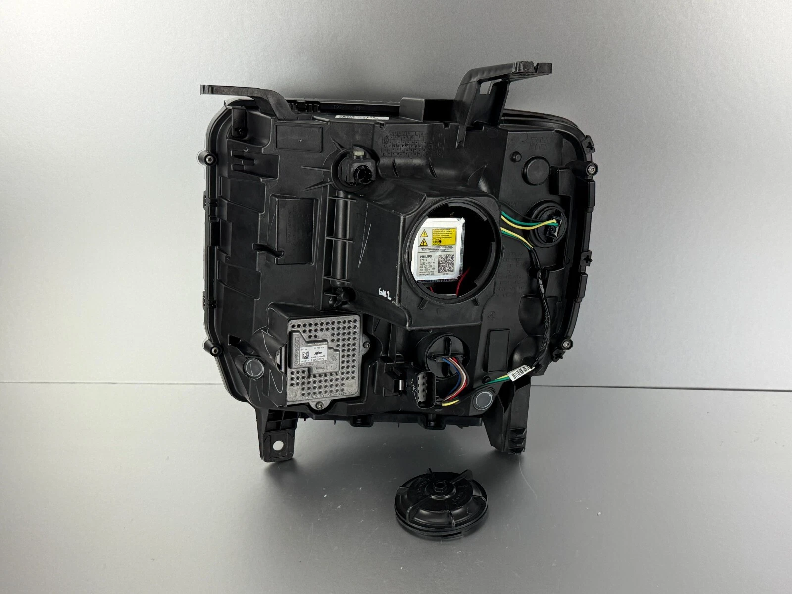 This OEM right passenger side headlight, part number 84180593, is made to fit GMC Sierra 2500HD and 3500HD models from 2016 through 2019. The headlight is not brand new but is in like-new condition, with a clear lens, solid housing, and no cracks or major flaws, ensuring reliable performance and a factory-original look. As an authentic OEM component, it guarantees precise fitment and quality consistent with the original manufacturer standards, making it a dependable replacement for a damaged or worn unit. This headlight assembly is fully functional and ready to be installed to restore proper visibility and the original style of your truck.